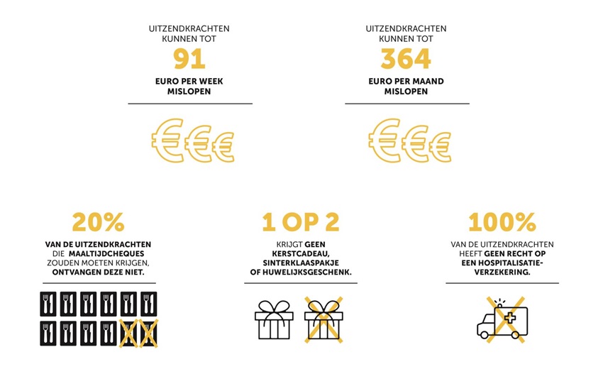 De resultaten van de enquête zijn verbluffend. Uitzendkrachten kunnen tot 91 euro per week of 364 euro per maand mislopen!